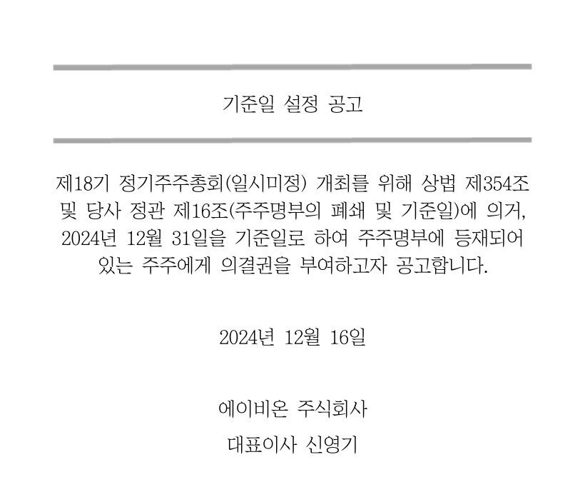 에이비온 기준일 설정 공고문